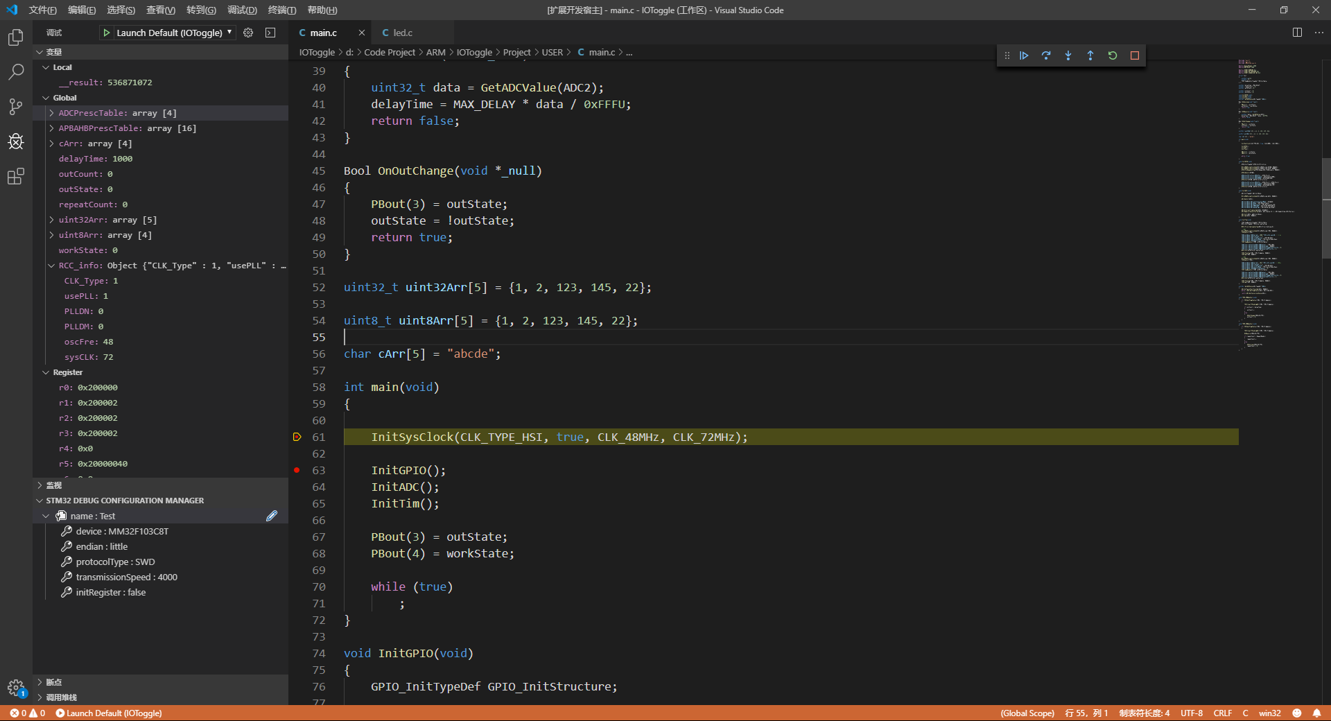最近发现了一个 vscode 插件,可以在 vscode上编译 C51 STM32,调试 STM32, 感觉挺好用的,推荐给大家 插件名:eide ,stm32 调试器 stm32-debugger 话不多说,上图,插件自带的 调试器的 来源:https://blog.csdn.net/qq_40833810/article/details/102749129 标签 stm32 vscode
