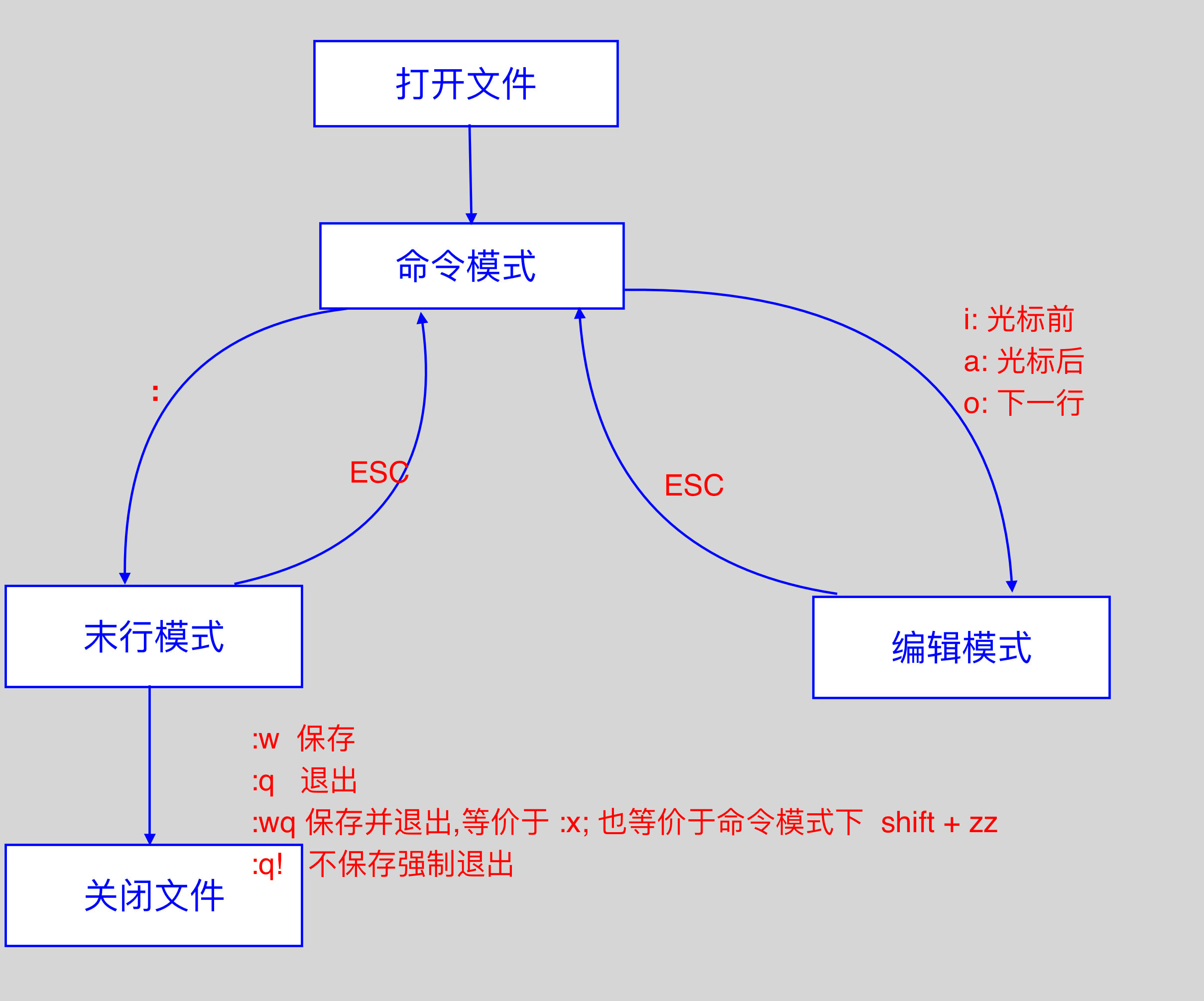 vi的入口; - 通过命令对文件进行常规的编辑操作, 例如: 定位,翻页,复制,粘贴,删除等;
