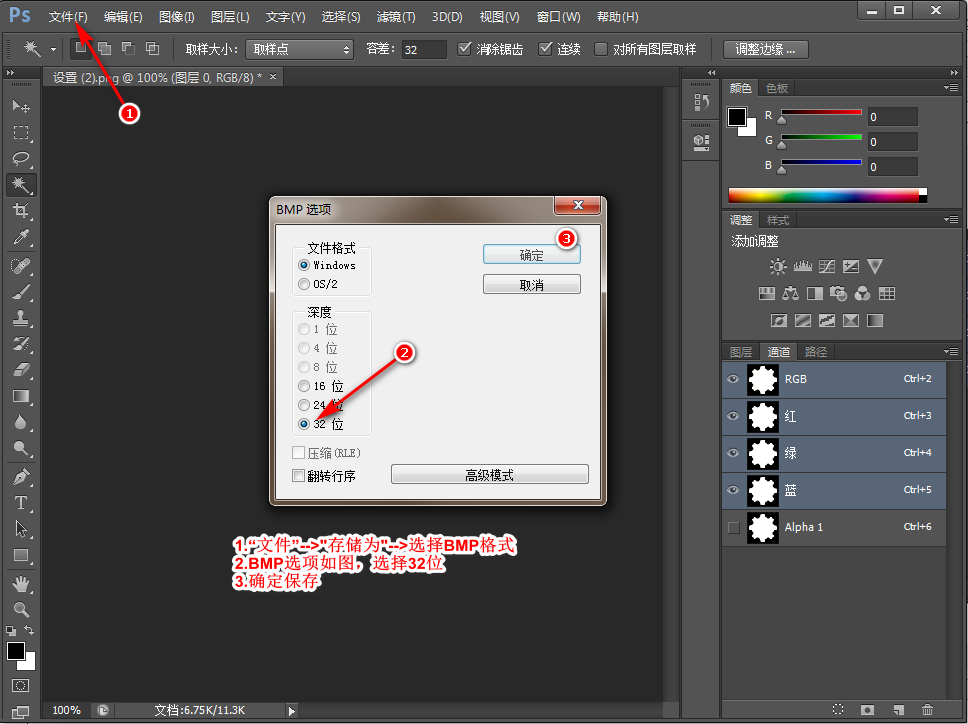 一.下载位图 https://www.easyicon.net/ 二.用BmpCvt.exe打开位图,发现并不是透明位图(如图一),但是用其他工具打开又是透明位图(如图二),这就坑人的地方 图一 图二 三.用PS修改位图 如上图能够显示透明位图,转换为C文件时选择“Ture color with alpha”即可 来源:https://www.cnblogs.com/ys77/p/11741866.html 标签 位图