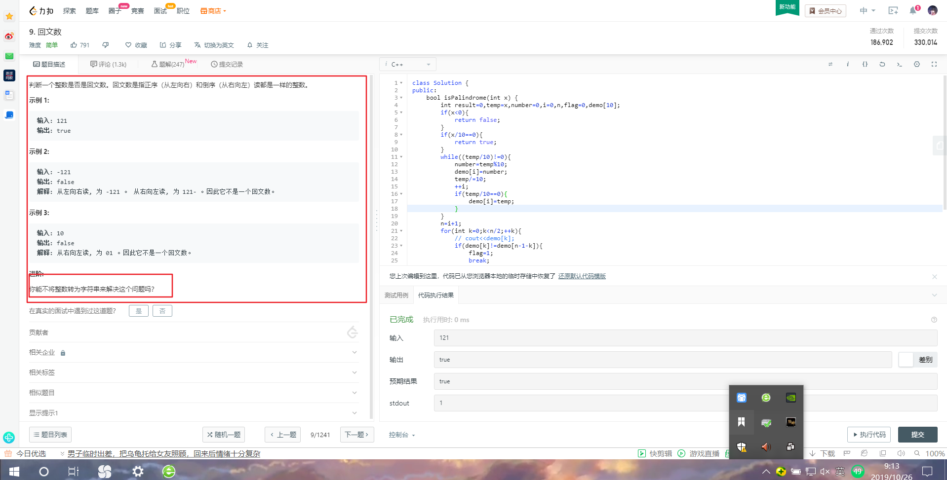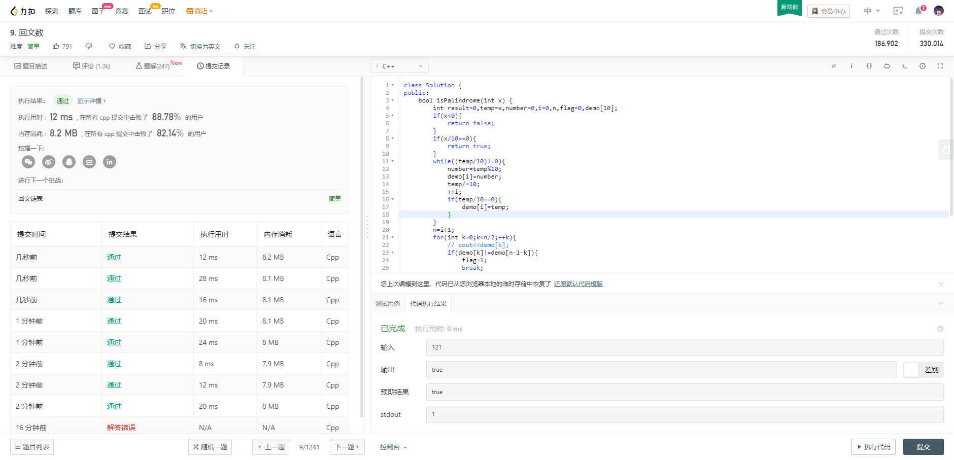 当然这个得分类讨论,带符号的负数是不存在回文数的,只有一位的数肯定是回文数。