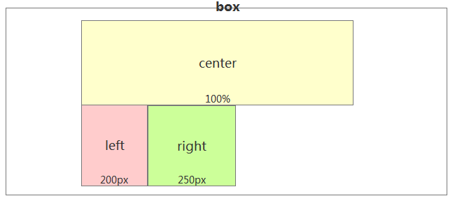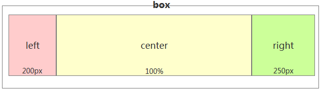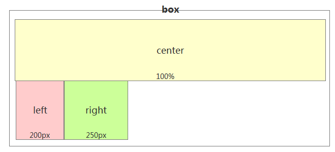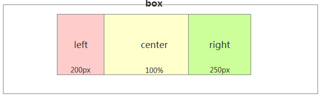 第一步:设置center宽度为100%,然后left和right设置固定宽度。然后三个div都左浮动。
