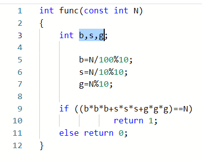 数据表达:b,s,g为整型语句,分别对个位十位百位来定义。