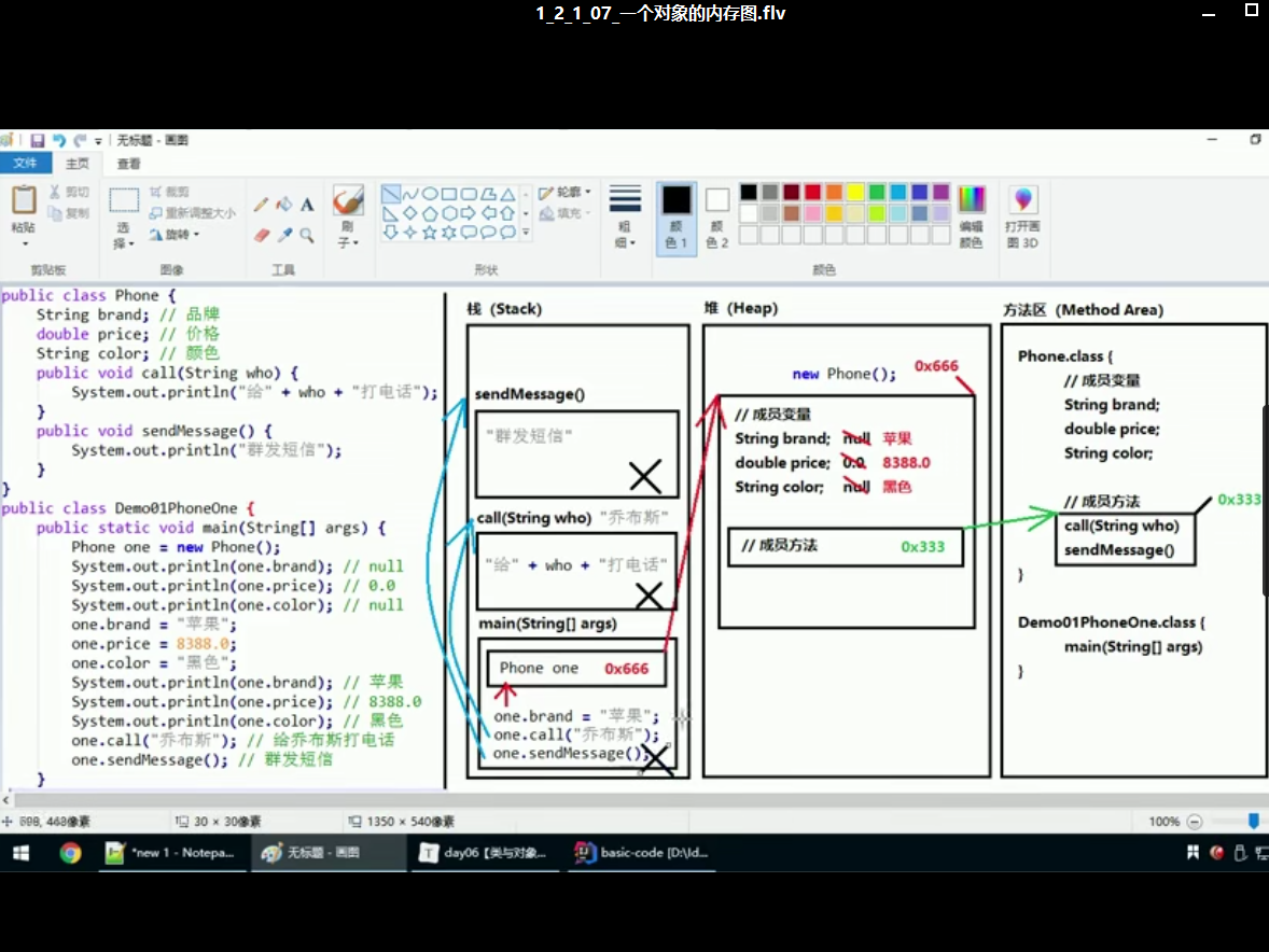 方法要执行,必定先进栈,执行完了就出栈,成员方法在堆当中保存的是地址,指向方法区