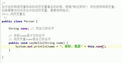 this关键字:通过谁调用的方法,谁就是this(地址相同),重名的情况下起到区分的效果