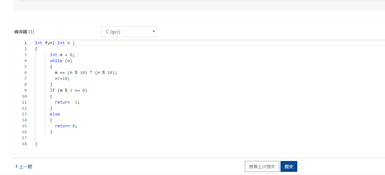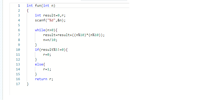 编写函数fun,其功能是:判断一个整数的各位数字平方之和能否被5整除,可以被5整除则返回1,否则返回0