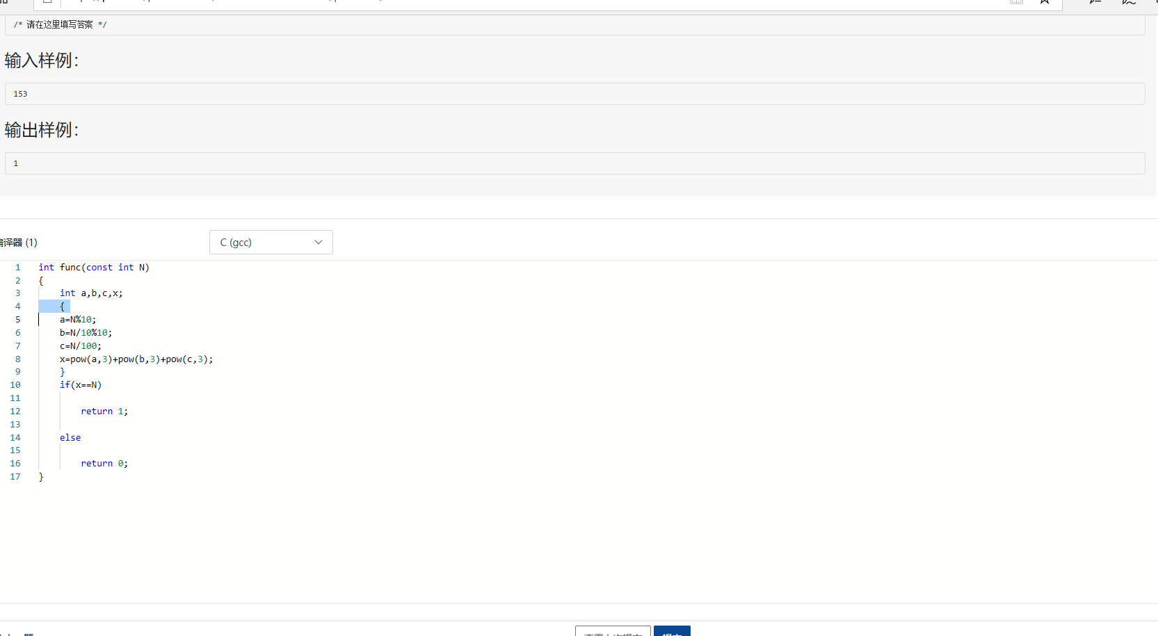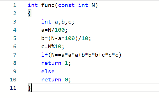 1.2本题要求实现一个函数,判断任一整数是否为水仙花数(必须是三位数,且数的每一位上数字的立方和与数本身相等)。例如153=1^3+5^3+3^3=1+125+27=153,而1或155则不是水仙花数。如果是水仙花数,则函数返回1,否则返回0.