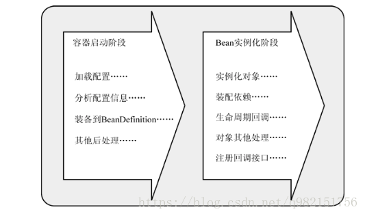 这两个阶段中,IoC容器分别作了以下这些事情: