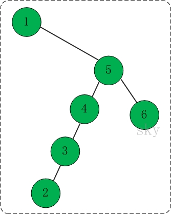 (02) 向二叉查找树中依次插入1,5,4,3,2,6 。如下图所示: