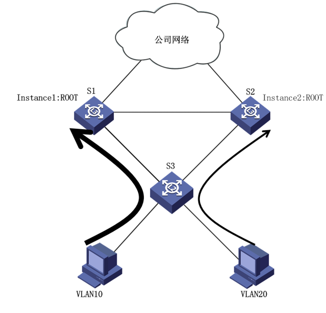 所谓实例就是多个VLAN的一个集合。通过将多个VLAN映射到一个实例,可以节省通信开销和资源占用率。MSTP各个实例拓补的计算相互独立,在这些实例上可以实现负载均衡。可以把多个相同拓补结构的VLAN映射到一个实例中,这些VLAN在接口上的转发状态取决于接口在对应MSTP实例的状态。