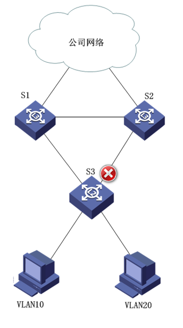 传统的生成树只能运行一个实例,且收敛速度慢,RSTP在传统STP基础上通过改进达到了加速网络拓补收敛的目的,但是目前依然存在一些缺陷。由于STP和RSTP在整个局域网中,所有的VLAN共享一个生成树实例,因此无法实现基于VLAN的负载均衡,网络环境稳定状态下备份链路始终不能转发数据流量,造成带宽的浪费!如图: