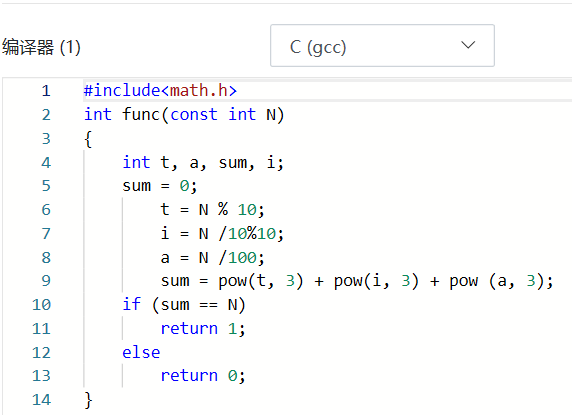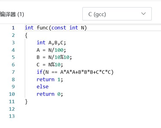 本题要求实现一个函数,判断任一整数是否为水仙花数(必须是三位数,且数的每一位上数字的立方和与数本身相等)。例如153=1^3+5^3+3^3=1+125+27=153,而1或155则不是水仙花数。如果是水仙花数,则函数返回1,否则返回0