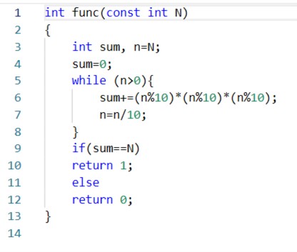 1.2.1 题目内容:本题要求实现一个函数,判断任一整数是否为水仙花数(必须是三位数,且数的每一位上数字的立方和与数本身相等)。例如153=1^3+5^3+3^3=1+125+27=153,而1或155则不是水仙花数。如果是水仙花数,则函数返回1,否则返回0.