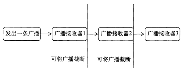 因此这种方式下,BroadcastReceiver是有先后顺序的,优先级高的BroadcastReceiver就能先收到广播消息,并且前面的BroadcastReceiver还可以截断广播,让后面的接收器无法收到。