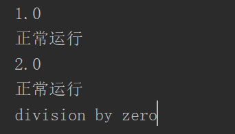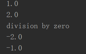1 a=3 2 b=2 3 for i in range(5): 4 try: 5 a = a - 1 6 c=b/a 7 print(c) 8 9 except Exception as e: 10 print(e)#输出异常行为名称