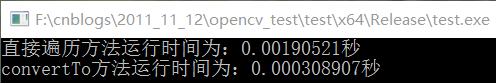 cout << "convertTo方法运行时间为:" << time0 << "秒" << endl;