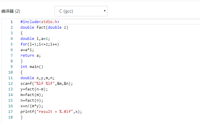 按照格式“result = 组合数计算结果”输出。题目保证结果在double类型范围内。1.2.1 数据处理