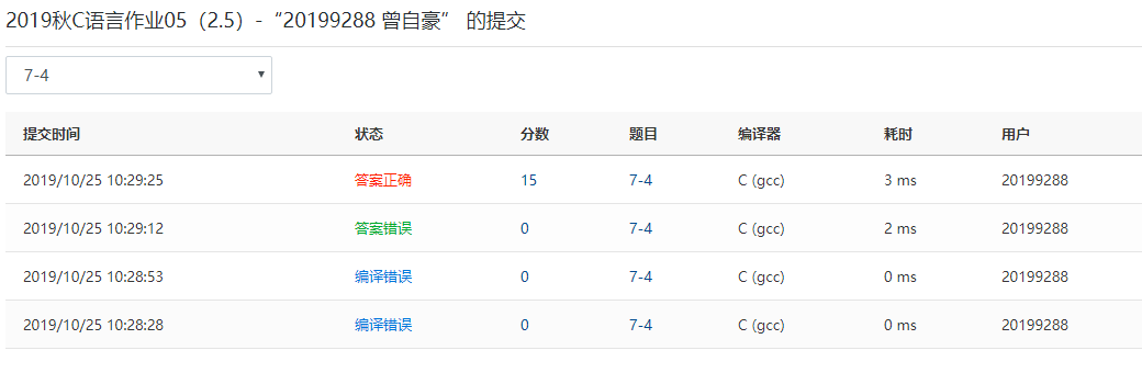 输入数据 输出数据 说明 0 5 1 m=0,n=5时的运行结果 5 10 252 m=5,n=10时的运行结果 10 15 3003 m=10,n=15时的运行结果 15 20 15504 m=15,n=20时的运行结果 1.2.4 PTA提交列表及说明