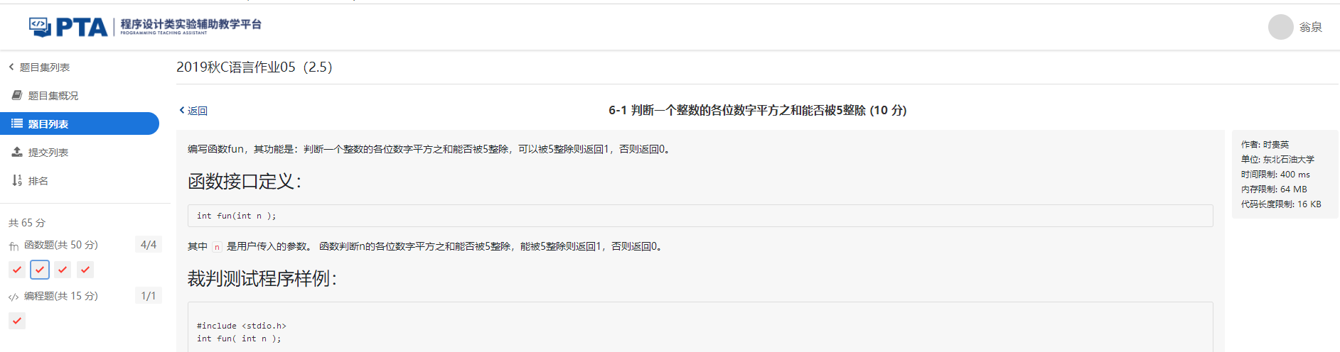 要求:“编写函数fun,其功能是:判断一个整数的各位数字平方之和能否被5整除,可以被5整除则返回1,否则返回0。