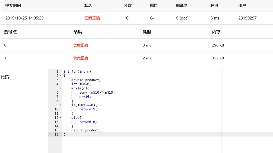 输入 输出 说明 25 The result is 0 25的各为数平方之和为29不可以被5整除 8 The result is 0 8平方之为64不可以被5整除 402 The result is 1 402的各位数之和为20可以被5整除 1.1.4PTA提交及列表
