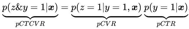 认识到点击(CTR)、转化(CVR)、点击然后转化(CTCVR)是三个不同的任务后,我们再来看三者的关联: