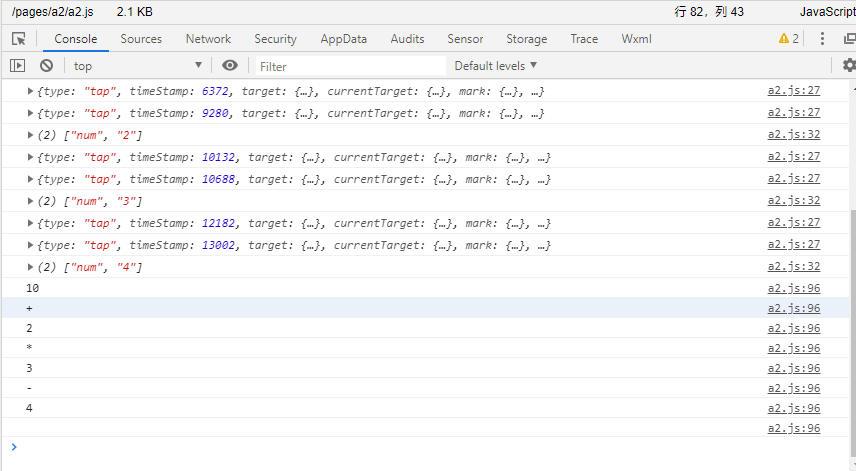 更改后得模拟器界面如下:这是的a2.wxml中存在的内容截图为:(a2.js、a2.json我们到这步一直不去动它)