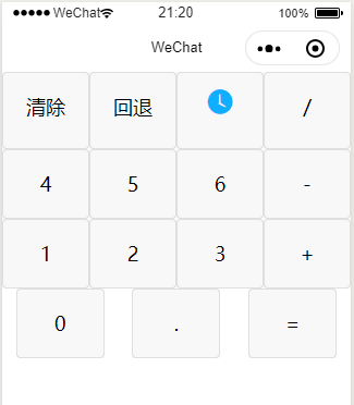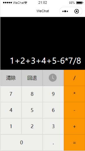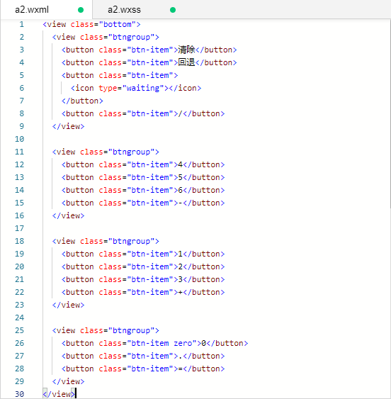- 第六步 依葫芦画瓢,继续在a2.wxml中添加计算器其他部分的代码(1-9 ±/*…)
