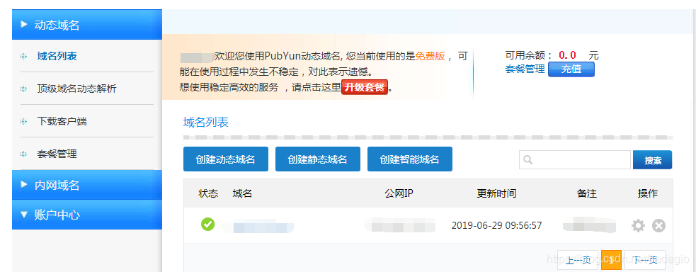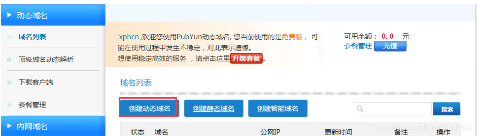 2、登录网页http://www.pubyun.com/accounts/signin/?next=/user/注册账号,然后创建动态域名
