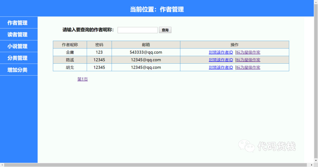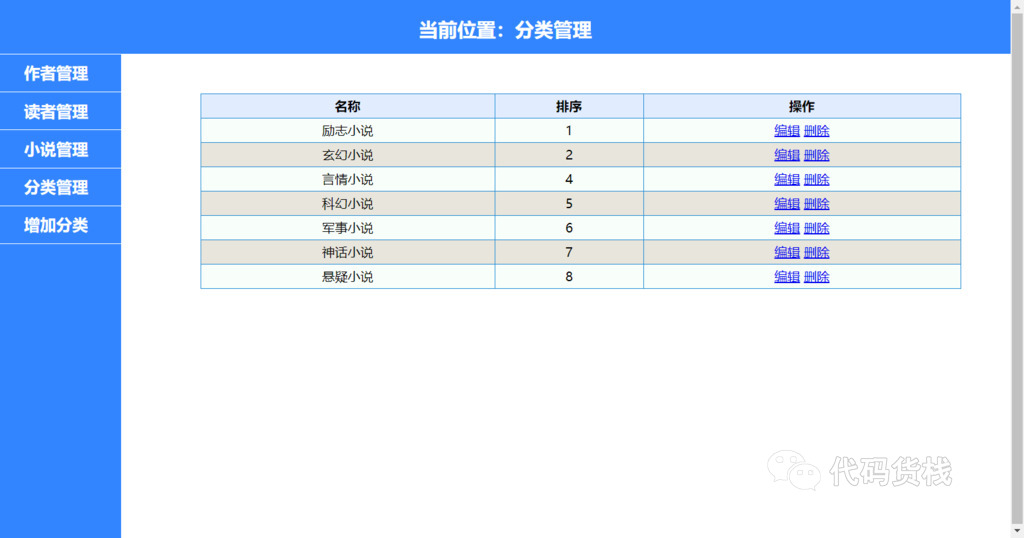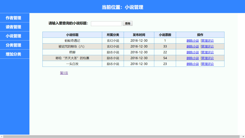 - 后台能够完成作者管理, 分类管理, 小说管理