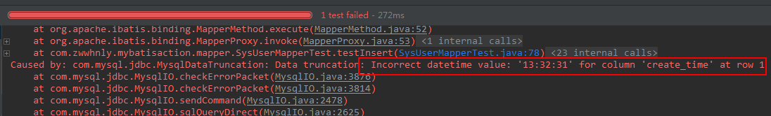 现在我们修改下createTime指定的jdbcType类型,直观的理解下jdbcType值的作用。