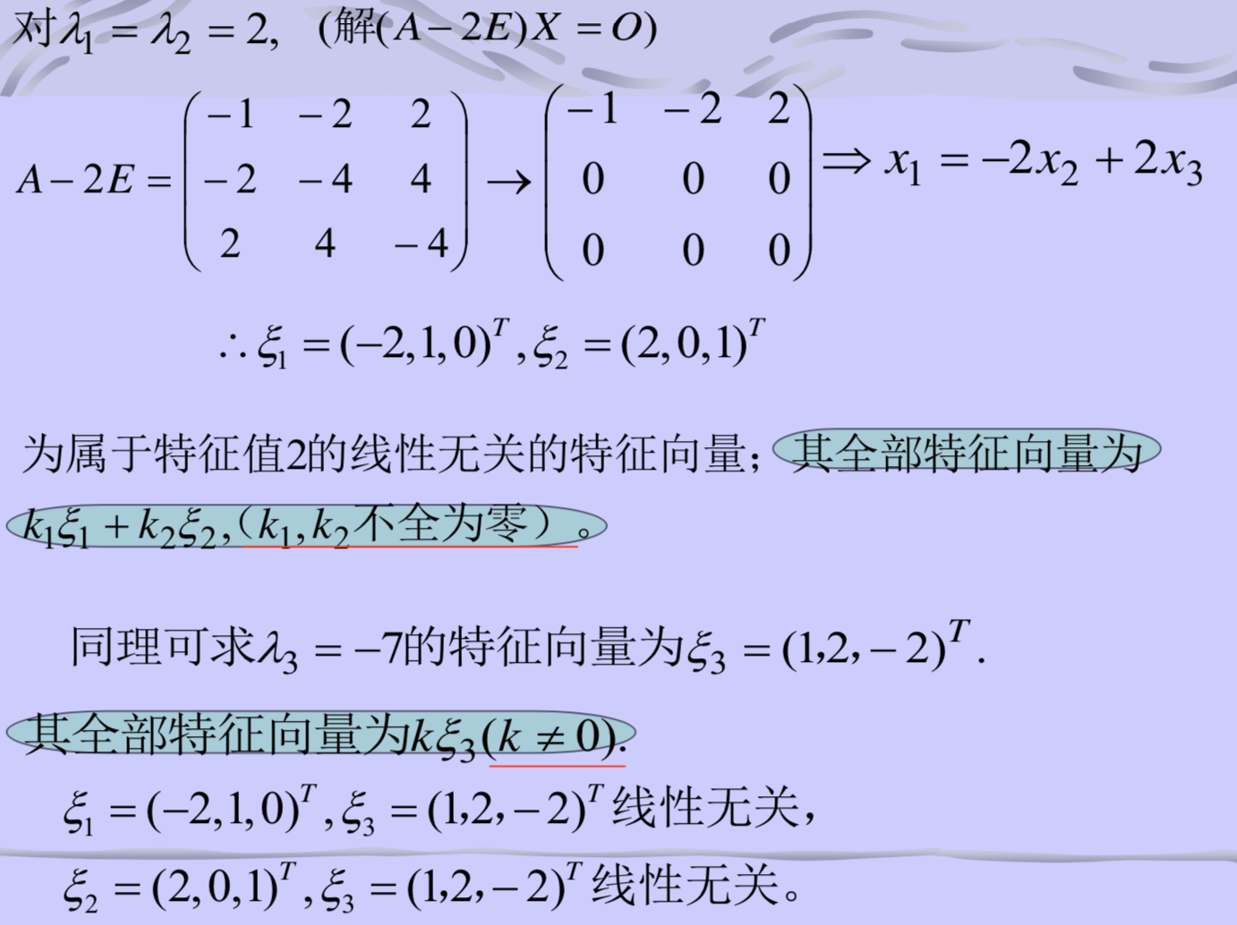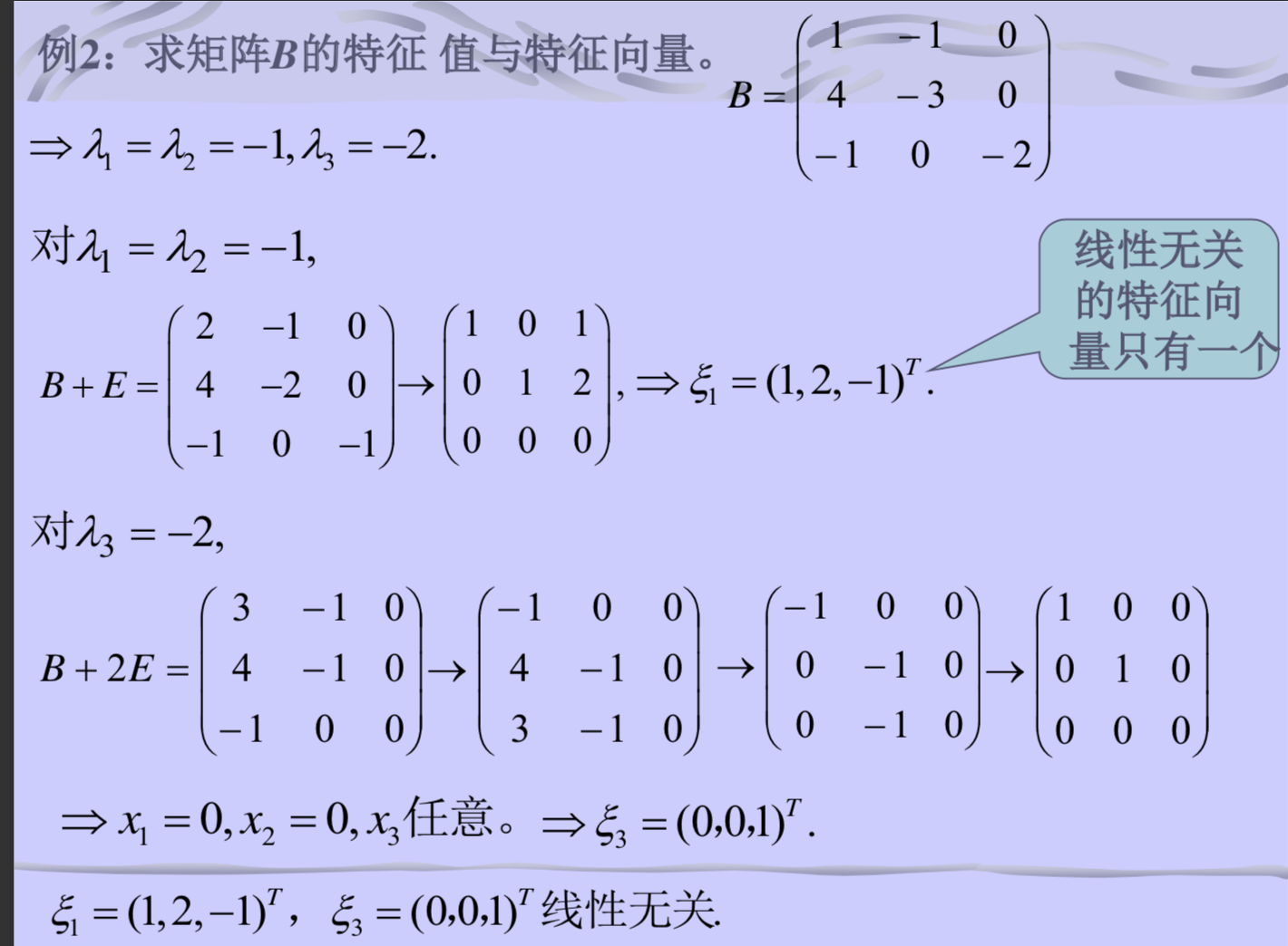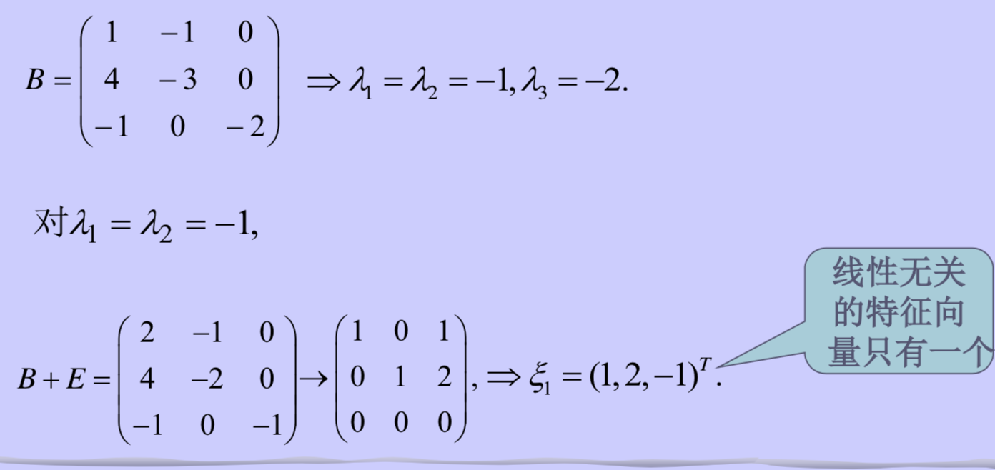 由此可见矩阵的k重特征值不一定有k个线性无关的特征向量。