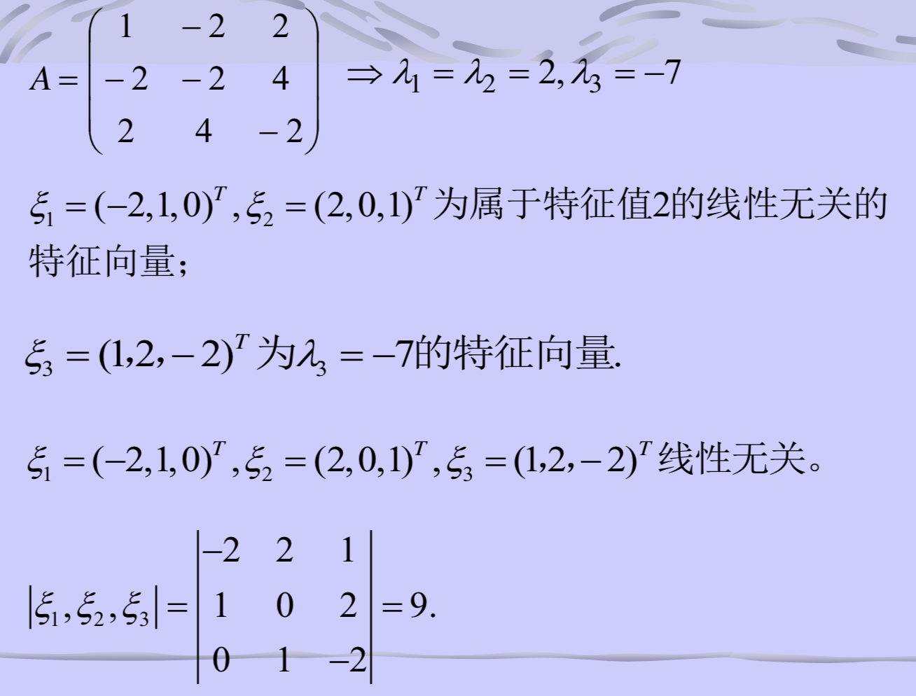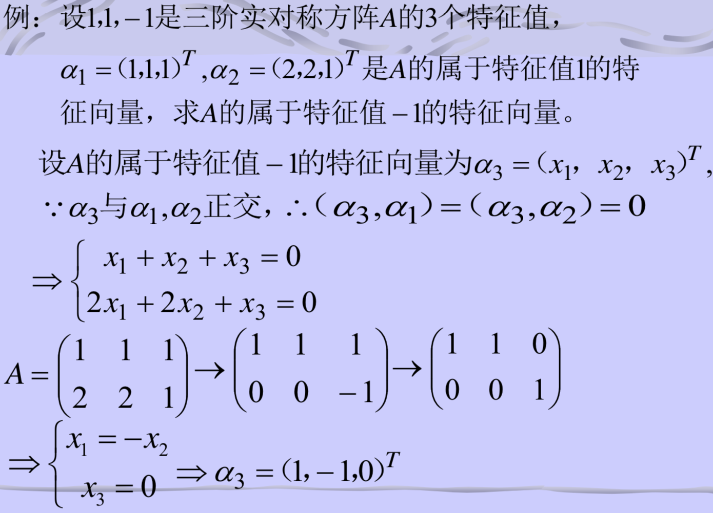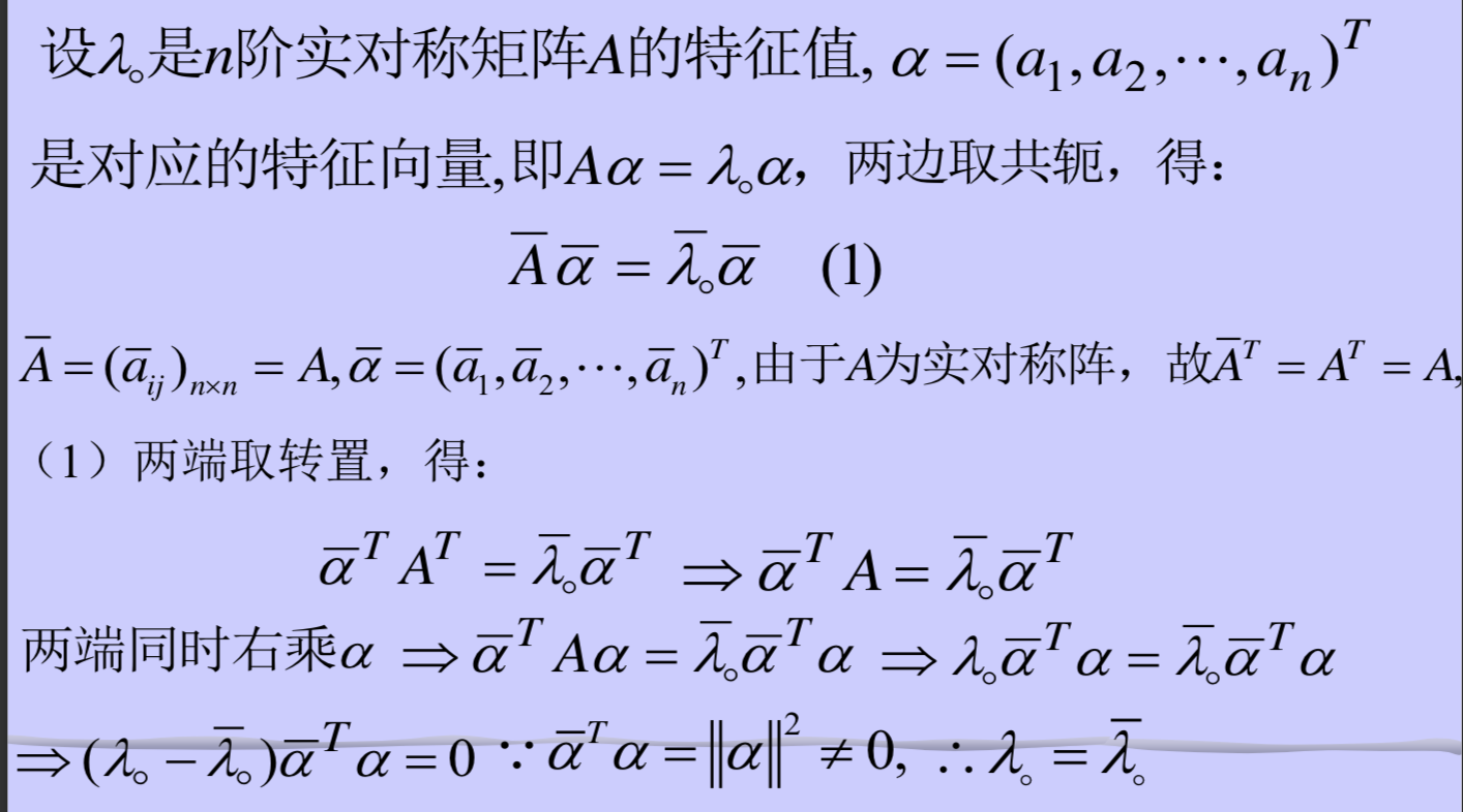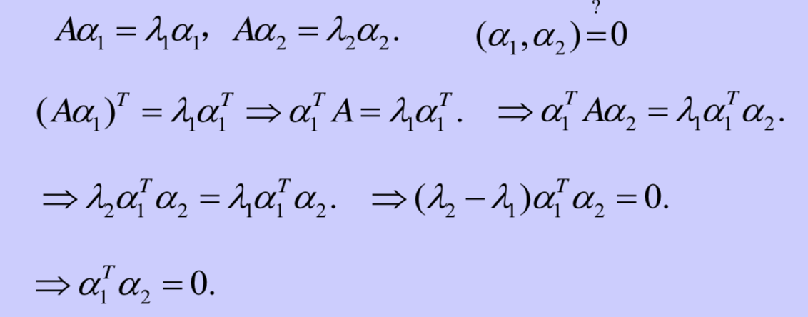 实对阵矩阵的相异特征值所对应的特征向量必定正交。