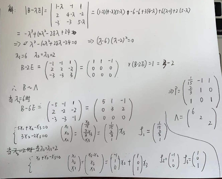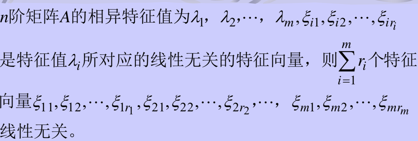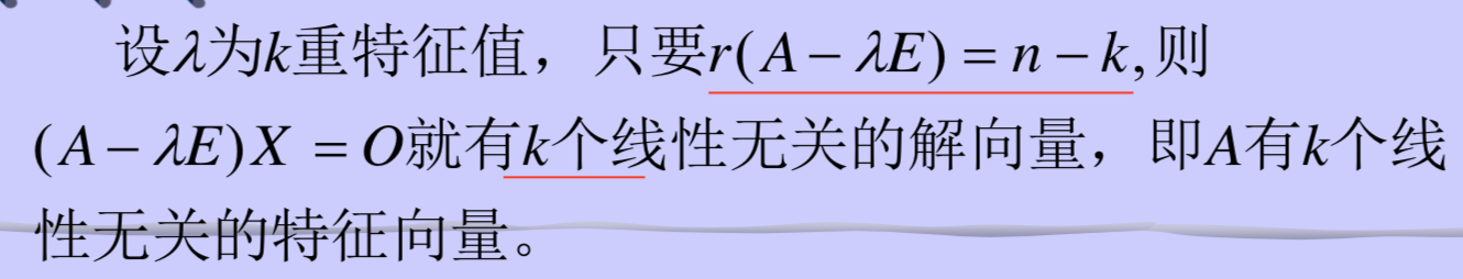 注意一般矩阵的k重特征值所对应的线性无关的特征向量不一定有k个,不一定与对角阵相似。