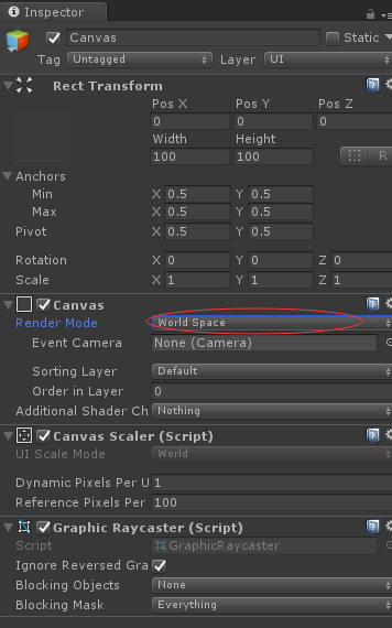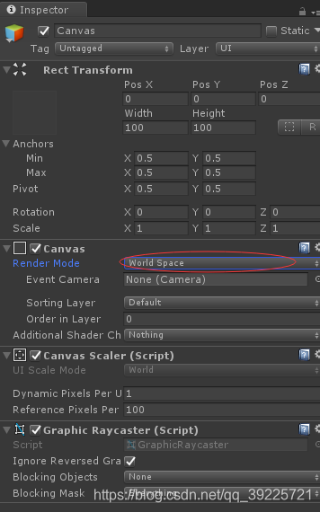 (2)修改Canvas的Render Mode-->world space