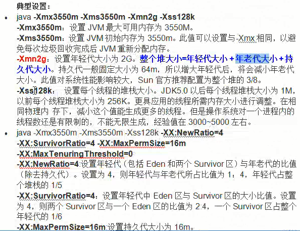 o -XX:SurvivorRatio=n:年轻代中Eden区与两个Survivor区的比值。注意Survivor区有两个。如:3,表示Eden:Survivor=3:2,一个Survivor区占整个年轻代的1/5