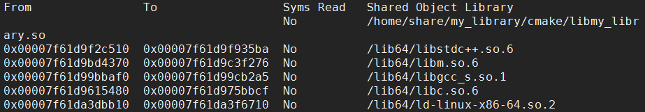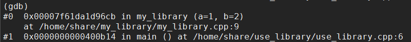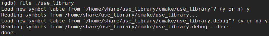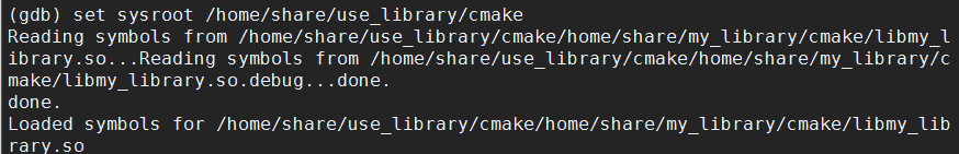 将libmy_library.so和libmy_library.so.debug放在当前目录下(./home/share/my_library/cmake),并设置set solib-search-path路径