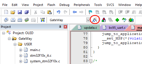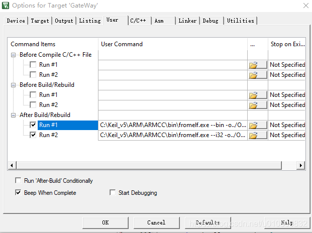 讲完了工具的语法,下面就讲如何在Keil中运用该自带的工具,以使在工程编译后能生成.bin格式的文件: