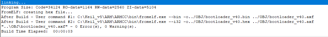 Run#1:C:\Keil_v5\ARM\ARMCC\bin\fromelf.exe --bin -o../OBJ/bootloader_v40.bin ../OBJ/bootloader_v40.axf