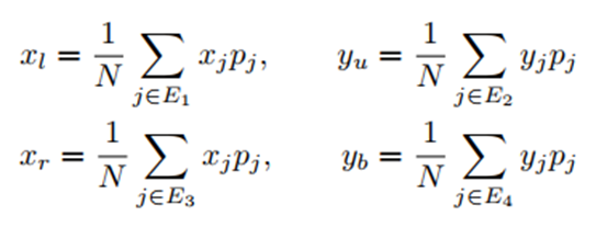 直观一些的表示如下图:以最上边的框边界yu为例,选择最上边的三个点计算其y坐标的加权和,即可得到相应上边界的坐标yu,权重为相应点的heatmap中的概率值。