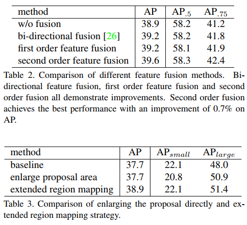 下图显示通过Grid Points Feature Fusion以及Extended Region Mapping所带来的实验结果的改变,可见两种改进方法的加入都带来了相应的提升。