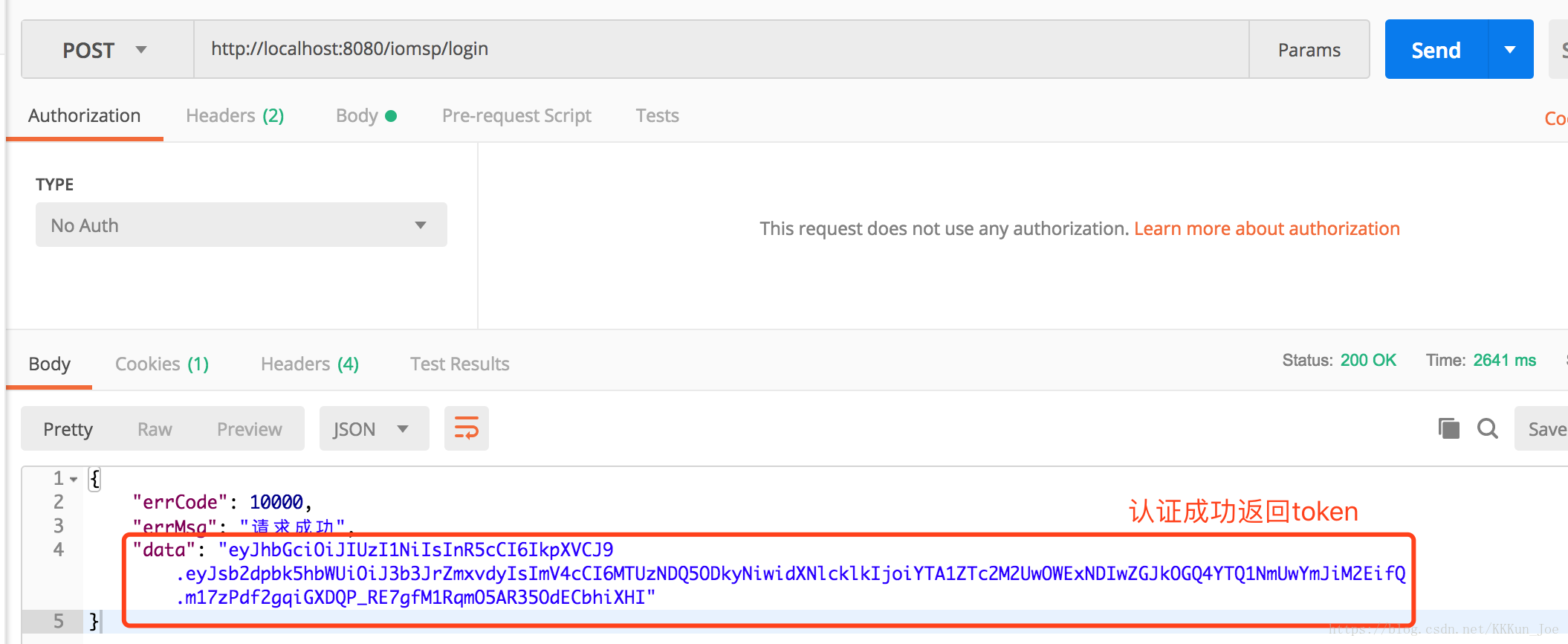 至此,一个简单的基于token认证就实现了,下次我将shiro与JWT整合到一起。