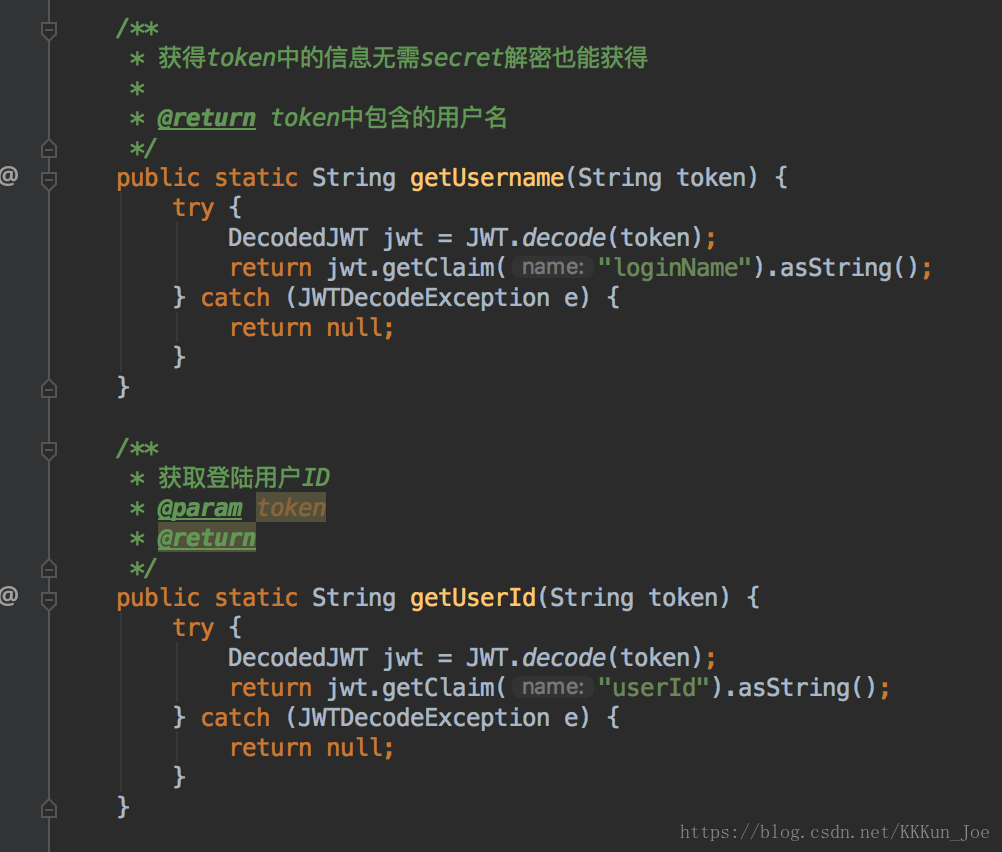 JWT:JSON Web Token,其实token就是一段字符串,由三部分组成:Header,Payload,Signature。详细情况请自行百度,现在,上代码。