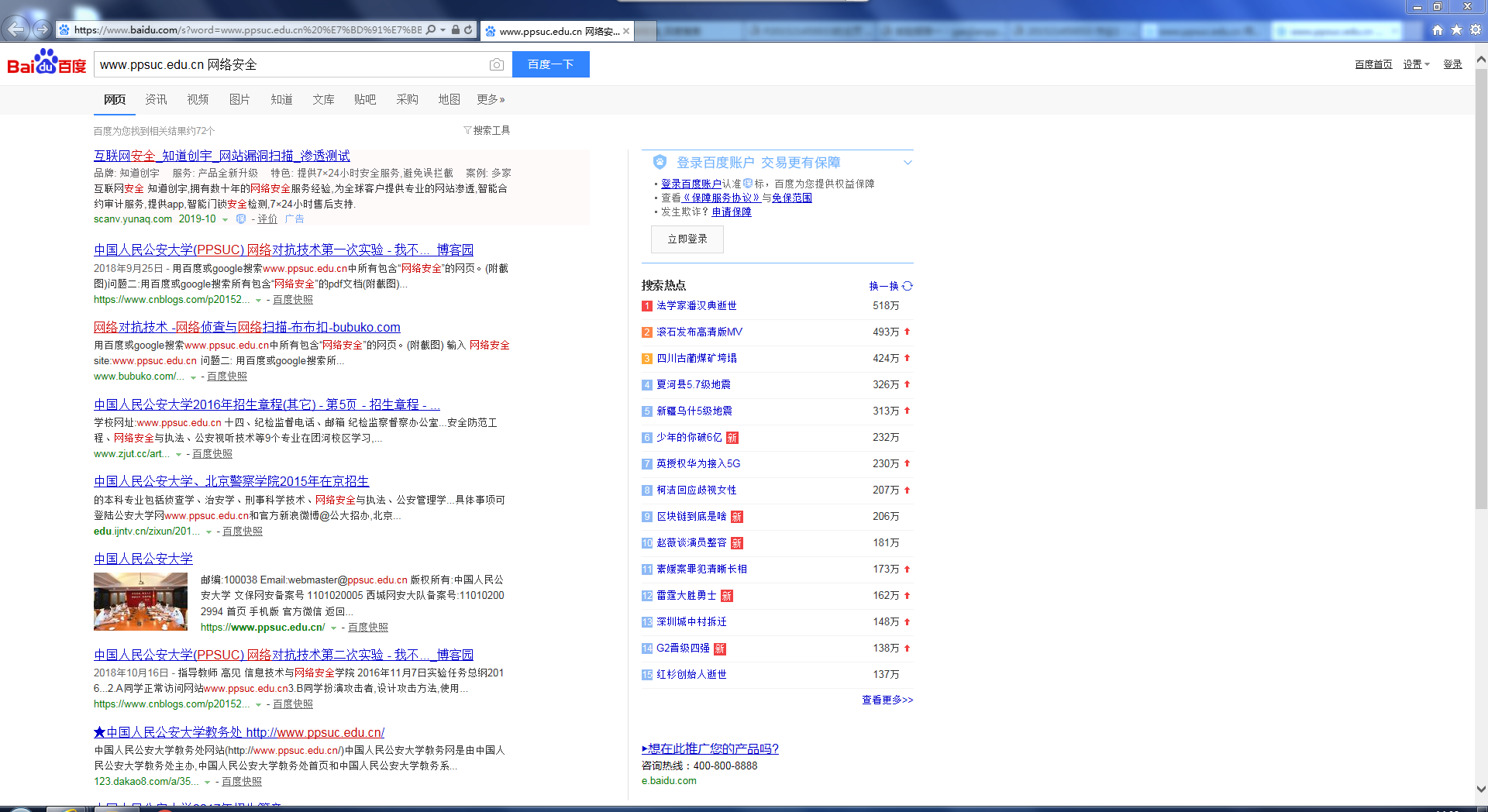 用百度或google搜索www.ppsuc.edu.cn中所有包含“网络安全”的网页。(附截图)