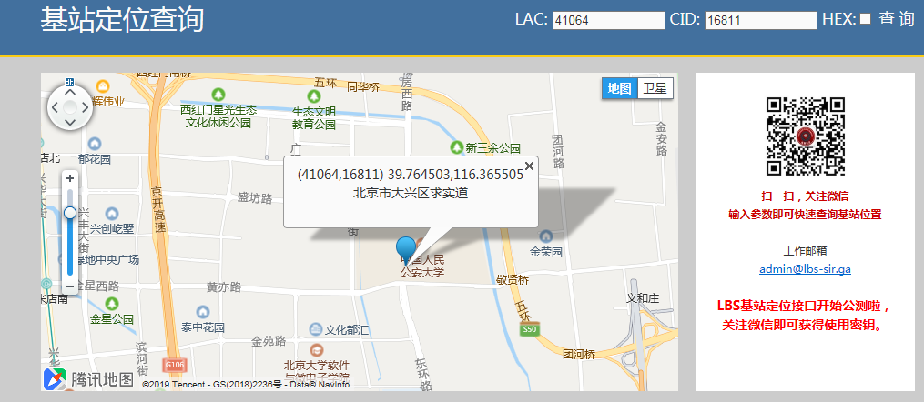 在一个案件中,获取了犯罪嫌疑人的LAC是41064,CID是16811,这个人可能在什么地方?(附截图)