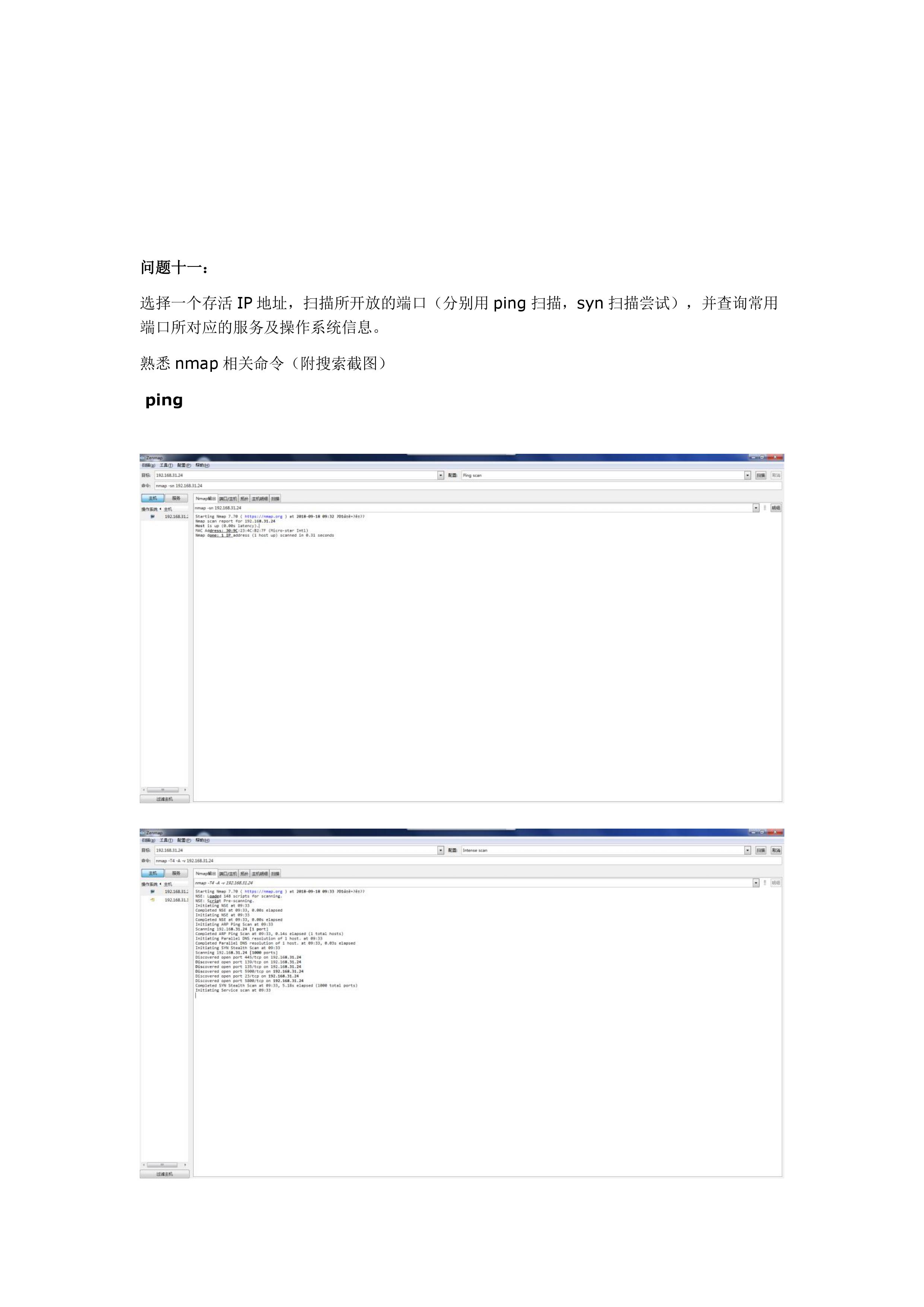 选择一个存活IP地址,扫描所开放的端口(分别用ping扫描,syn扫描尝试),并查询常用端口所对应的服务及操作系统信息。熟悉nmap相关命令(附搜索截图)