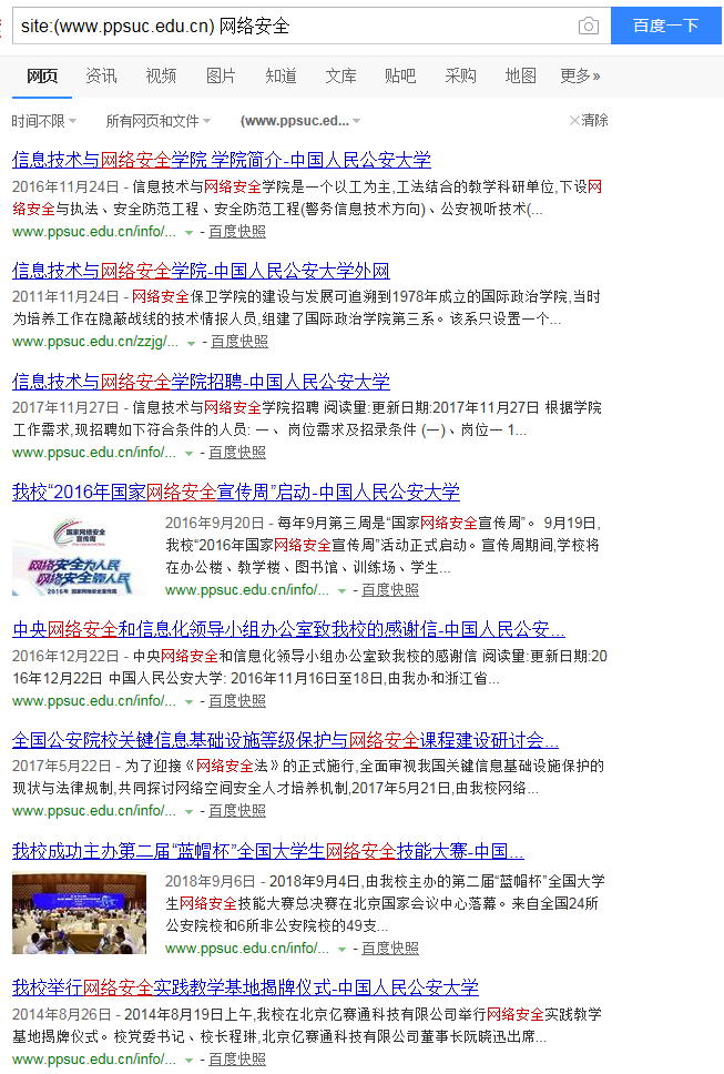 用百度或google搜索www.ppsuc.edu.cn中所有包含“网络安全”的网页。(附截图)