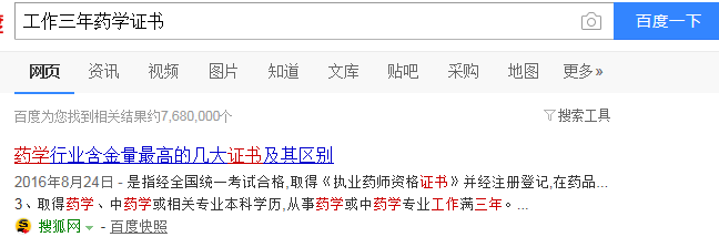 小丽是药学专业的一名本科生,现已从事药学专业的工作,目前她想考取一个资格证,但是报名条件中要求其工作满三年。那么,小丽想考取的是什么证。(请回答并附截图证明。)