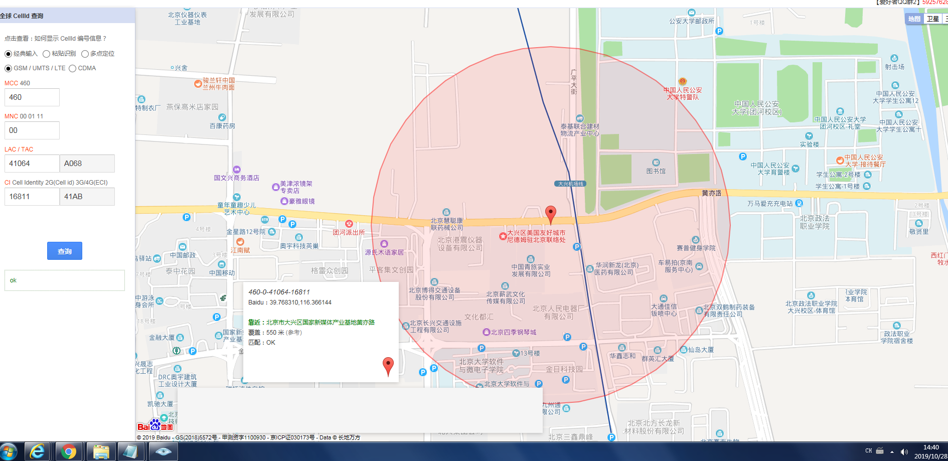 在一个案件中,获取了犯罪嫌疑人的LAC是41064,CID是16811,这个人可能在什么地方?(附截图)