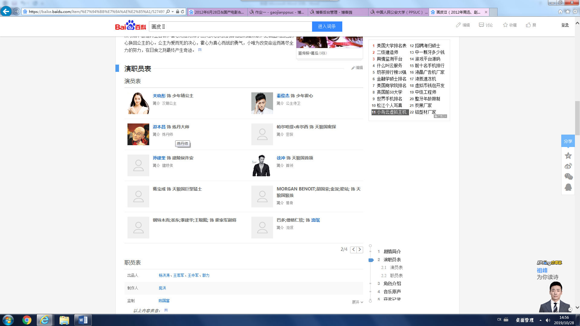 已知2012年6月28日上映的电影为画皮2,找到演员游本昌