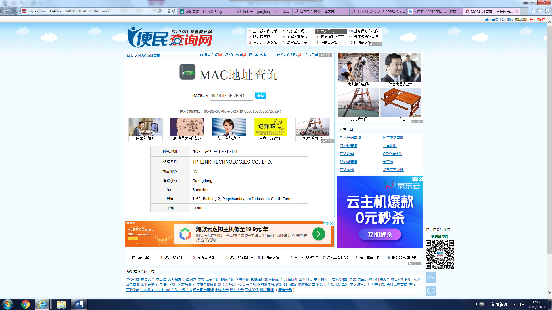 在一个案件中,获取了犯罪嫌疑人的一个MAC地址:40-16-9F-4E-7F-B4,请查询该MAC地址对应的厂商是(附截图)
