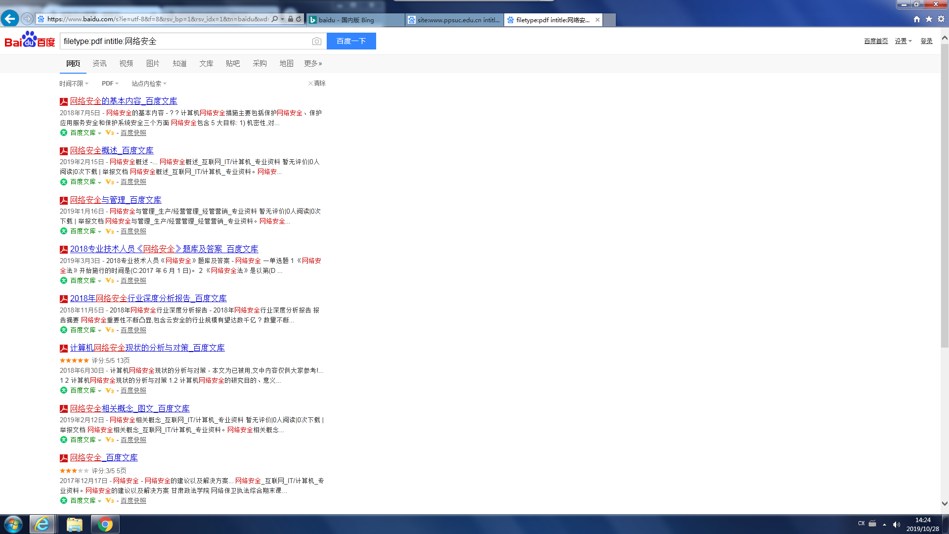 用百度或google搜索所有包含“网络安全”的pdf文档(附截图)